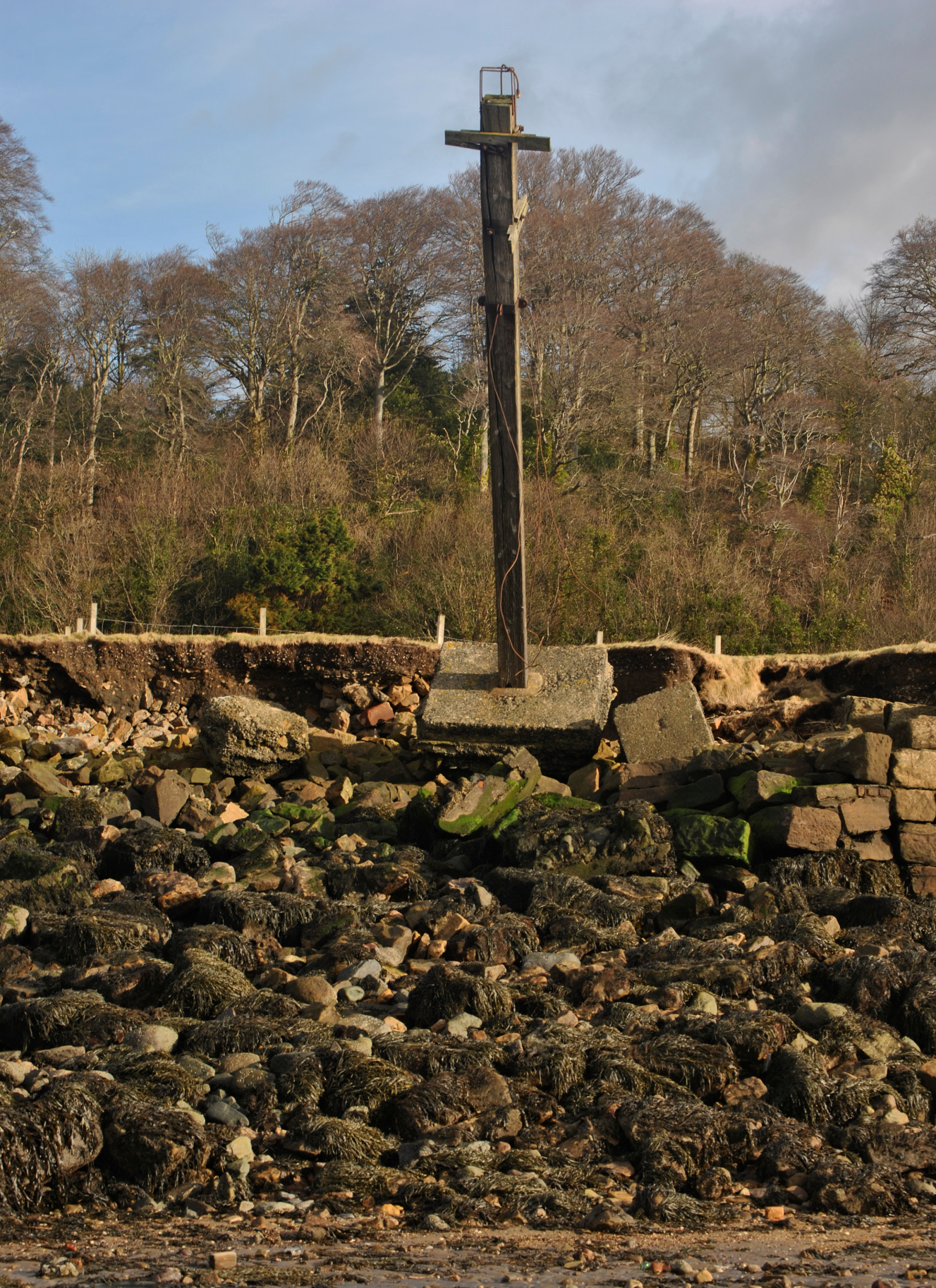 Limekilns harbour was for centuries the main port for Dunfermline in Fife and was constituted by David II in 1362, however it was likely to have been used as a harbour before this period. A ghaut is a cutting and The Ghauts is the name given to the long cutting in a low ridge of rocks forming an entrance to the harbour. The cutting is 3 metres deep and the ridge slopes away on either side. There is much fallen debris as well as the remains of mooring posts within the cutting.